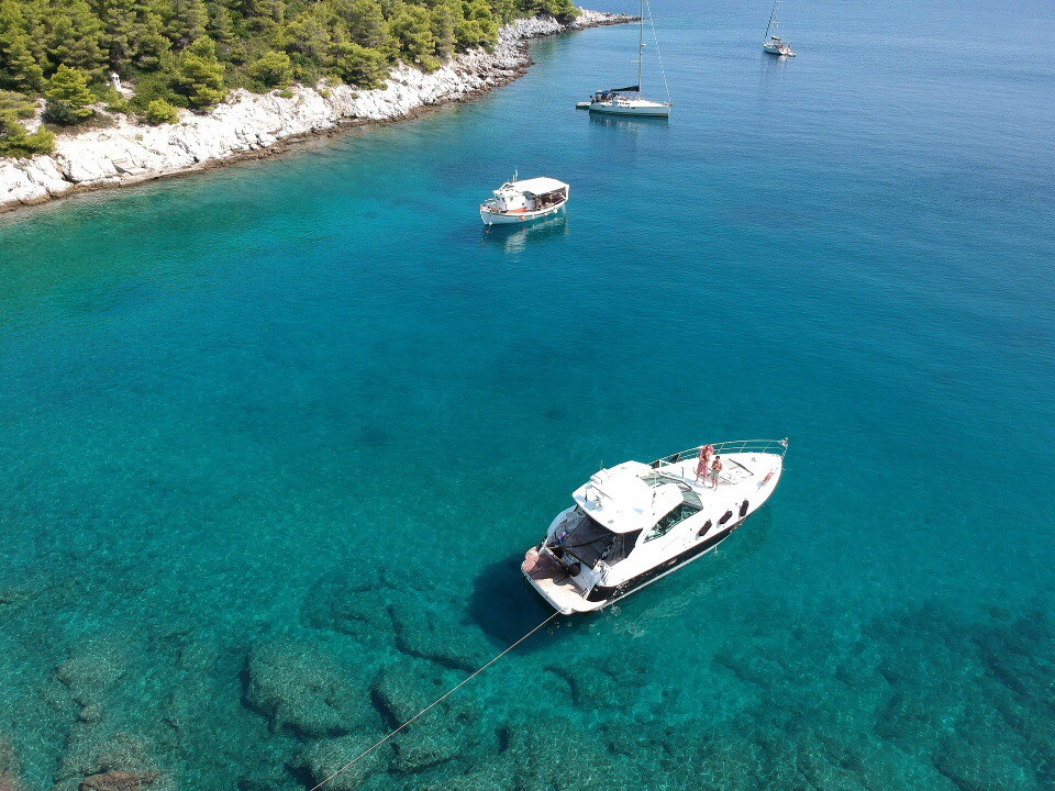 The Sporades luxury boat adventure takes us to the greenest island of Greece and the most populated island of the Sporades, the wonderful Skopelos. One of the most beautiful islands of the Aegean! The coastline here is dotted with dozens of beautiful beaches and secluded coves such as Panormos, Stafylos, Loutraki and many others. Skopelos even appeared in the popular movie Mamma Mia in 2008, which explains the increasing number of tourists in the last 10 years. From the magnificent forest that covers over 50% of the island to an array of cozy restaurants and whitewashed hillside houses, the island certainly has a lot to offer. Go on a guided tour of the steep streets of the Old Town of Skopelos, try the traditional plums, honey and cheese pie! Enjoy snorkeling at Panormos beach.